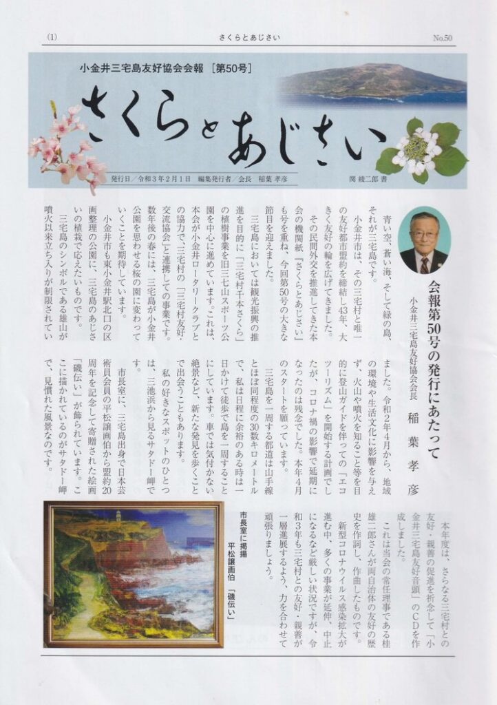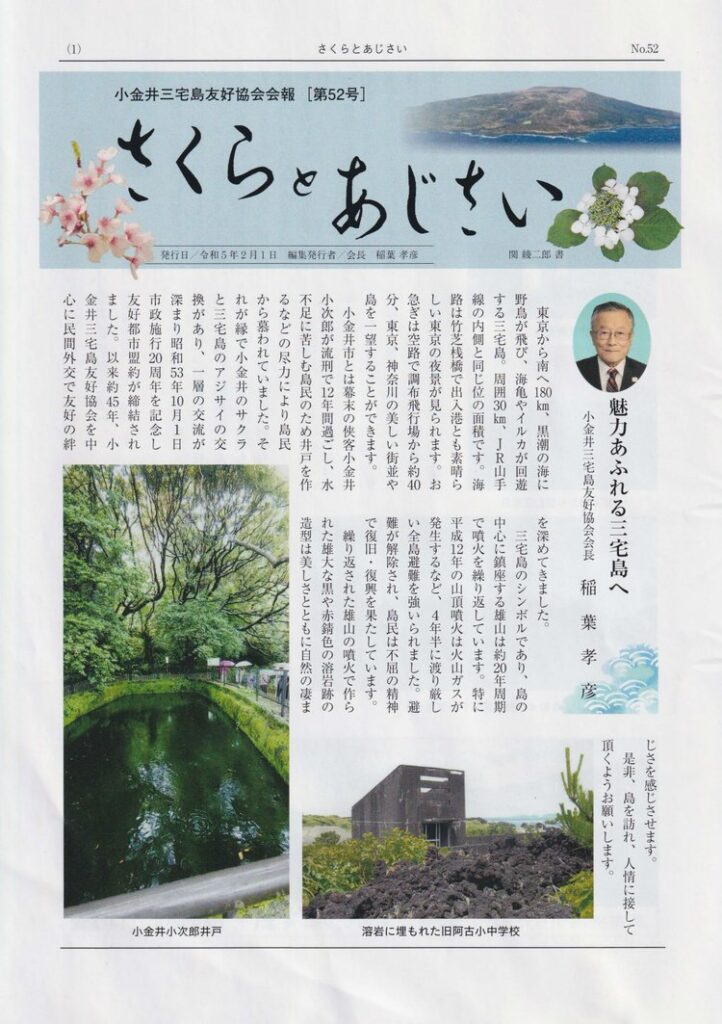 - 三宅村の中学生が小金井市を訪問。ガクアジサイの苗提供など、相互交流が深まる。小金井市内では「三宅島物産展」が実施され、地域間の理解促進に寄与。